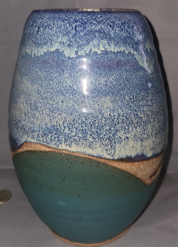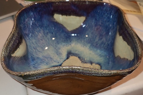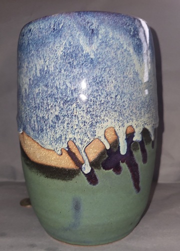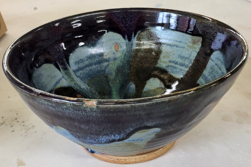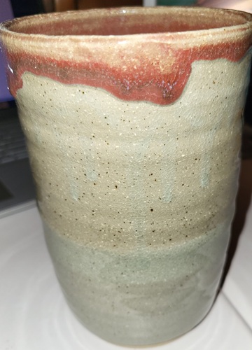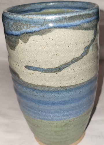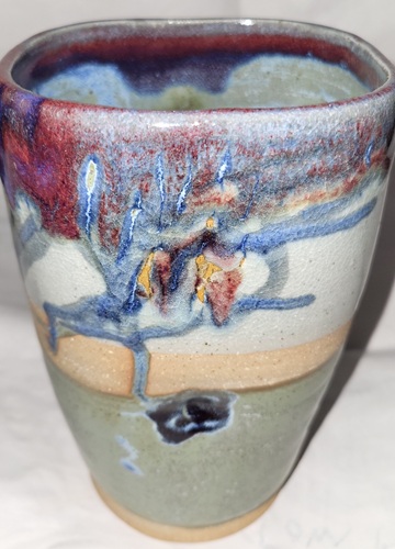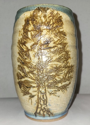 Various sizes of cups and mugs for coffee, hot chocolate or hot oatmeal. All are microwavable and dishwasher safe. Various decorations including appliques created with actual leaves, unique carvings and interesting glazes.